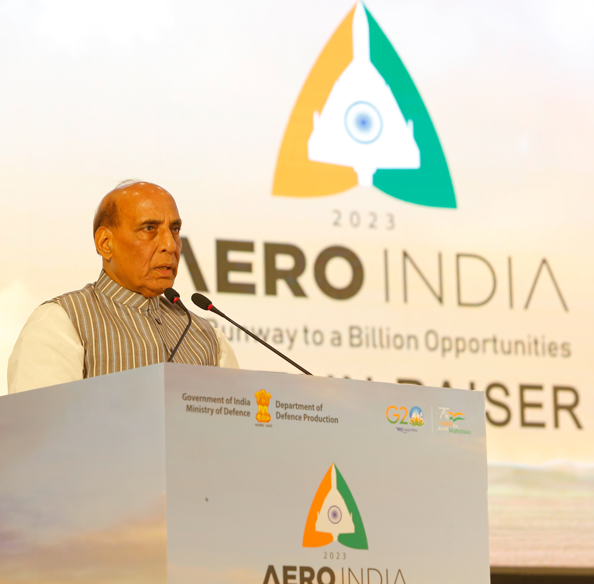 Defence Minister Rajnath Singh at the Aero India 2023 curtain-raiser on Sunday | Photo: Ministry of Defence