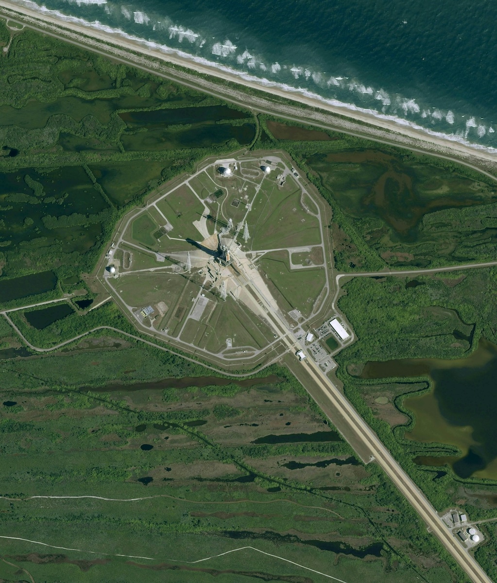 An image of the roll out of the SLS rocket carrying the Artemis II mission taken by Pleiades Neo | Photo: Airbus Defence and Space