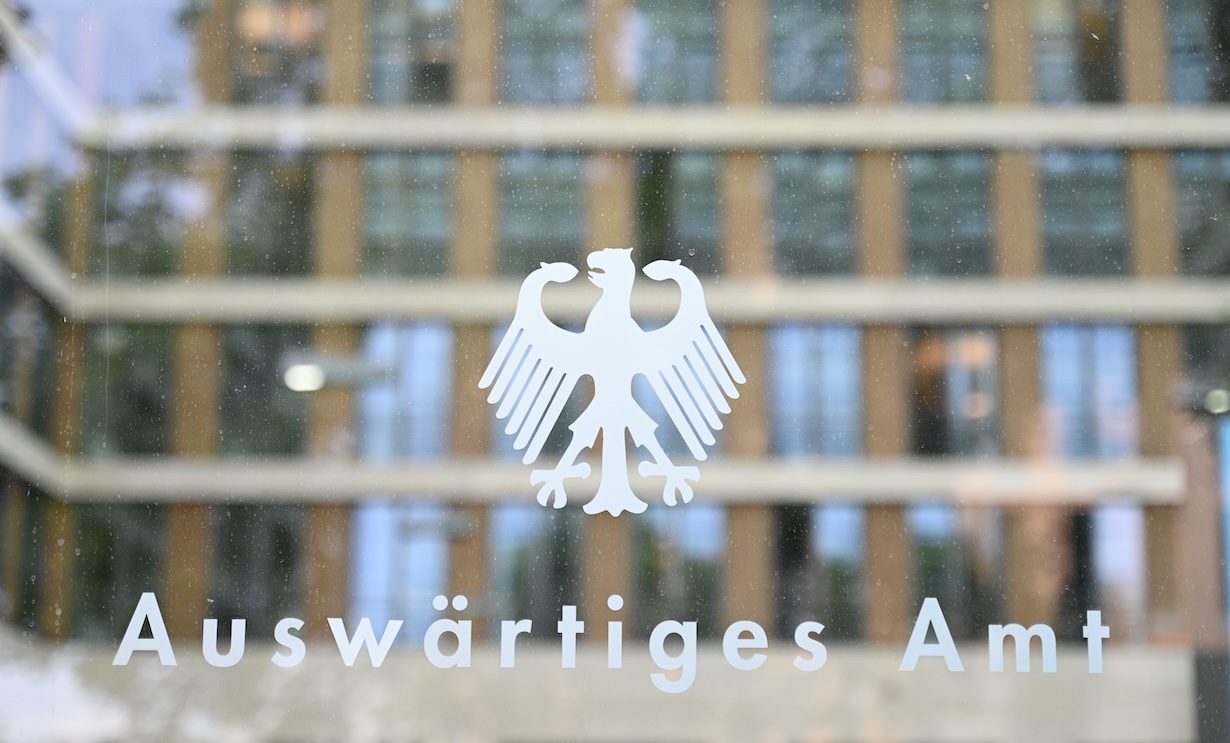 The federal eagle and the words “Auswärtiges Amt” can be seen on a pane of glass at an entrance to the Federal Foreign Office | File Photo: Katharina Kausche/dpa