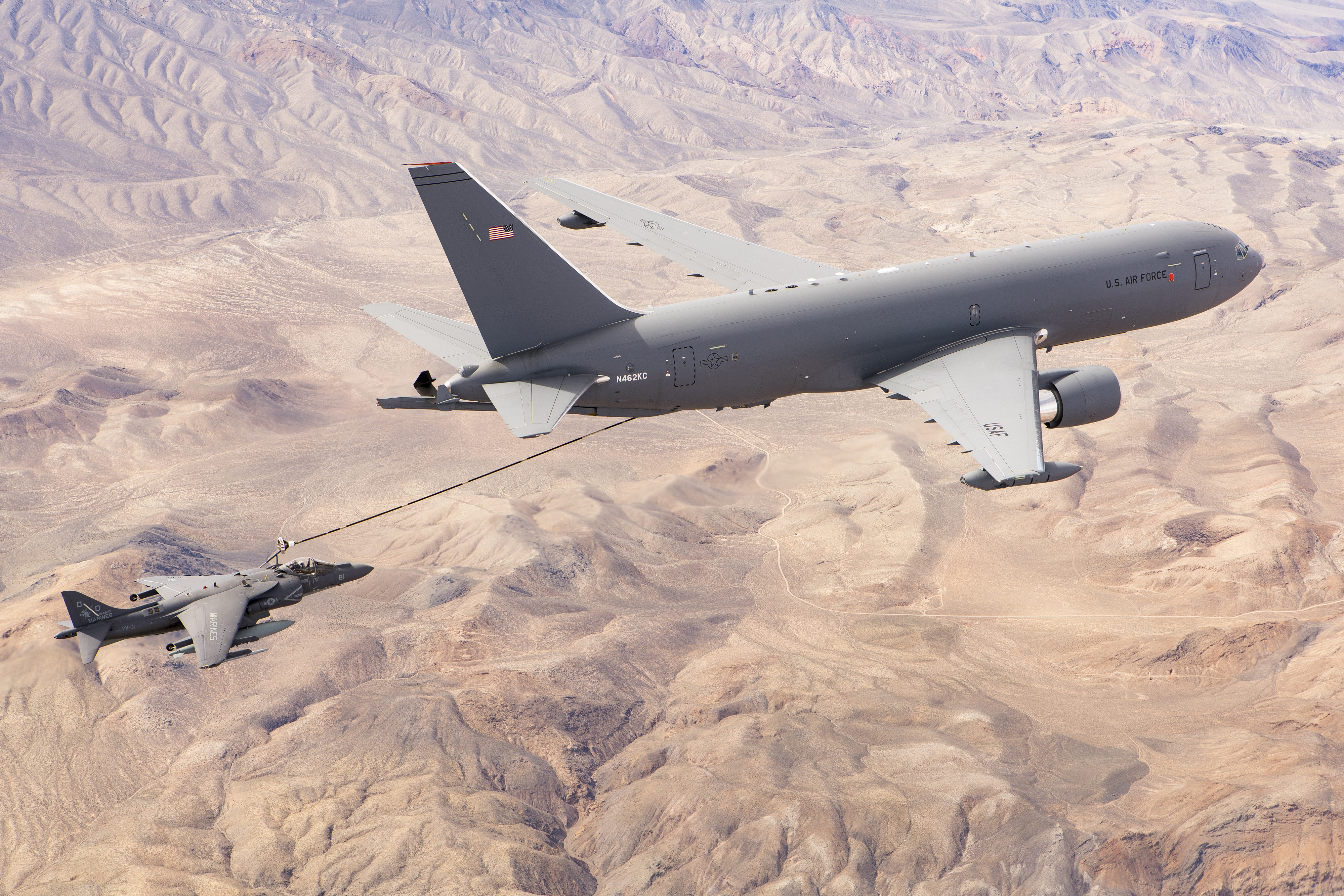 “This aircraft will be the biggest tanker fleet in the world (with 179 aircraft). The air force said they wanted a commercial derivative aircraft much like the P-8, so we’re building this aircraft inline at the Boeing factory up at Everett, just like other KC-767s. Only, the biggest difference is we’re building the combat capability into this aircraft as we build it – just like the P-8. We’re building the tanks, the military systems — everything is being built into that aircraft, as it’s being built,” said Hanbey, who also pointed out, “A lot different from building an aircraft and then taking it and modifying it with different air-refueling systems added on. Like an after-market sunroof, if you will.”
