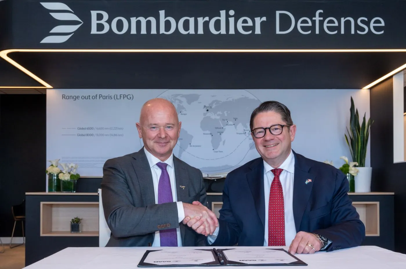 Saab’s President and CEO, Micael Johansson, with Bombardier’s President and CEO, Eric Martel | Photo: Bombardier