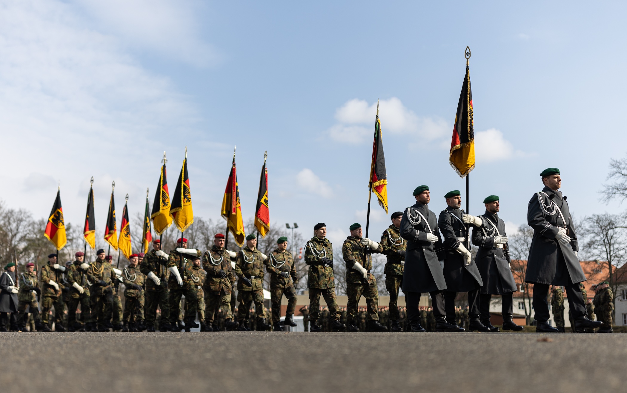 Soldiers depart the event carrying German flags on March 14, 2025 in Berlin | File Photo: Hannes P. Albert/dpa