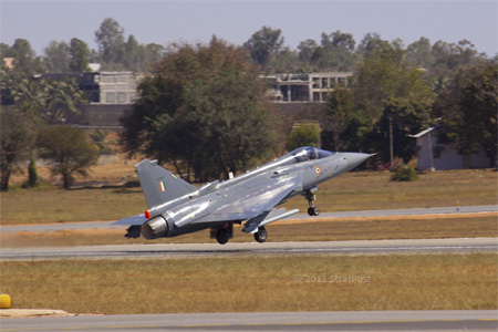 - Indian Air Force (IAF) Light Combat Aircraft (LCA) Tejas at Aero India 2011. Photo: Shashank Nanda/StratPost