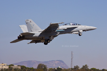 - A US Navy F/A-18 Super Hornet at Aero India 2011. Photo: Shashank Nanda/StratPost
