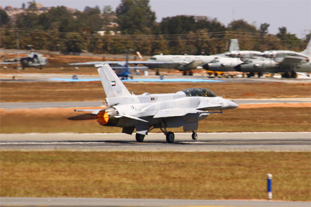 - A United Arab Emirates Air Force F-16 at Aero India 2011. Photo: Shashank Nanda/StratPost