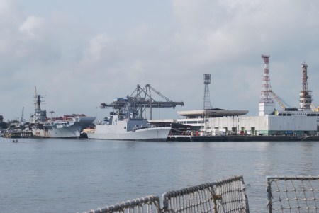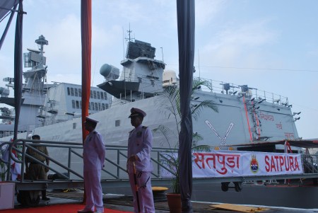 - The Satpura, seen from the deck of the INS Mysore, a day before being commissioned into the Indian Navy.