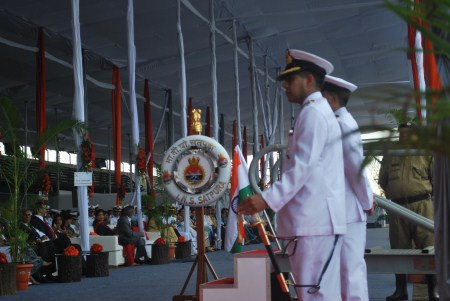 - Captain Sharat Mohan reads out the Commissioning Warrant of the INS Satpura.