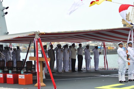 - The other warships at the Naval Dockyard in Mumbai welcomed the latest addition to the fleet.