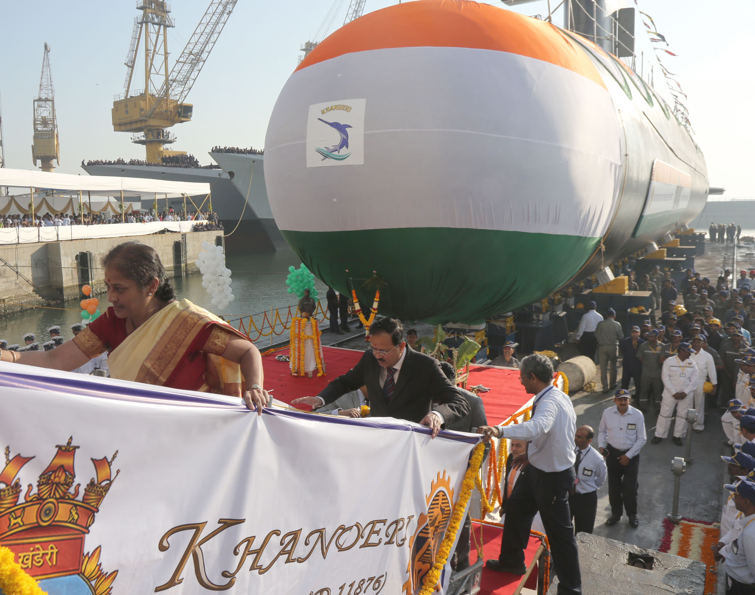The Indian Navy’s second Scorpene-class submarine, Khanderi, was launched into the waters by India’s Minister of State for Defense, Dr. Subhash Bhamre, in the presence of Admiral Sunil Lanba, Chief of the Naval Staf at Mazagon Dock Limited shipyard on Thursday.
