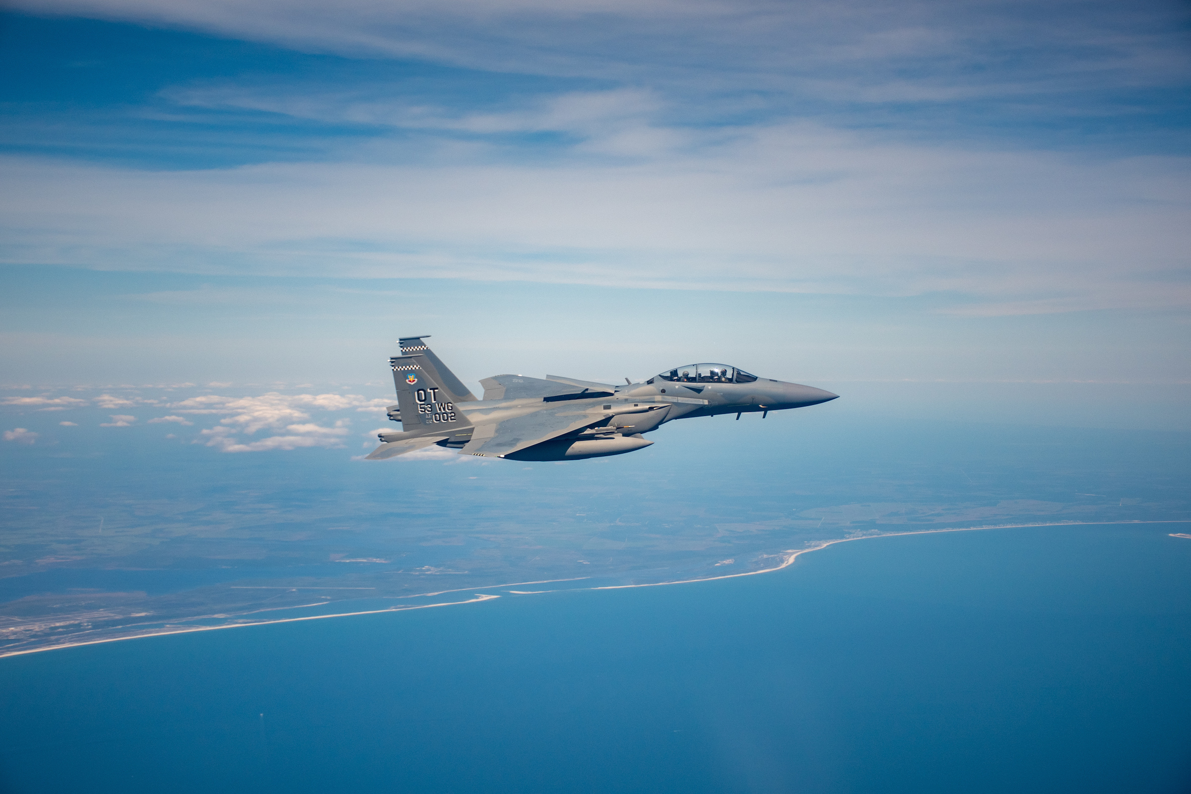 Boeing says the F-15EX is ‘the most advanced version of the F-15 ever built, with digital fly-by-wire flight controls, a new electronic warfare system, an all-glass digital cockpit, and the latest mission systems and software capabilities.’
