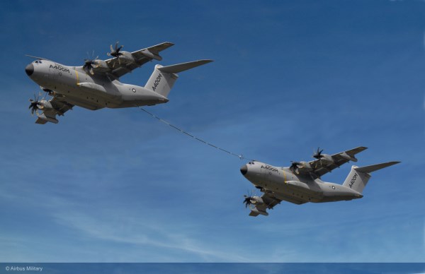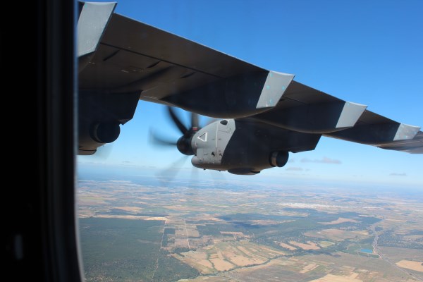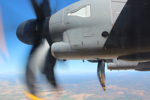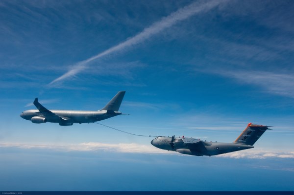 It has four eight-blade contra-rotating turboprop engines (the Hercules has six-blade engines) unlike the C-17, which has turbofans. Oh, and it’s a tanker as well.