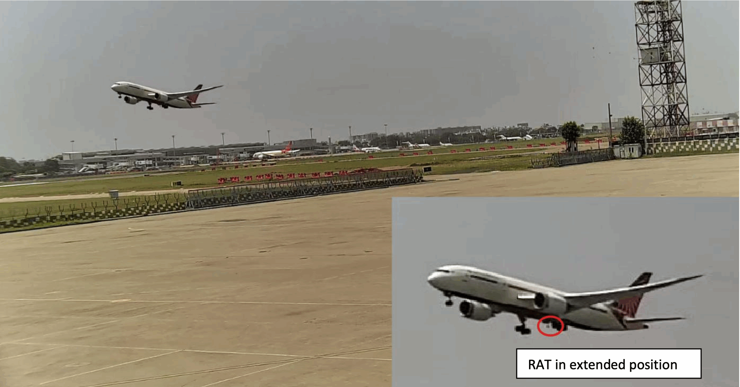 CCTV screenshot of RAT Deployment on Air India 171 on June 12, 2025 | Image: Preliminary Report of India’s Aircraft Accident Investigation Bureau