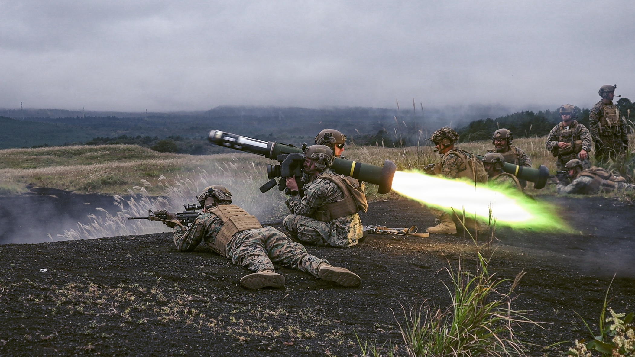 U.S. Marines with Battalion Landing Team 1st Battalion, 7th Marine Regiment, 31st Marine Expeditionary Unit, fire the FGM-148 Javelin during live-fire training at Combined Arms Training Center, Camp Fuji, Japan, on October 10, 2025 | Photo: U.S. Marine Corps/Lance Corporal Victor Gurrola
