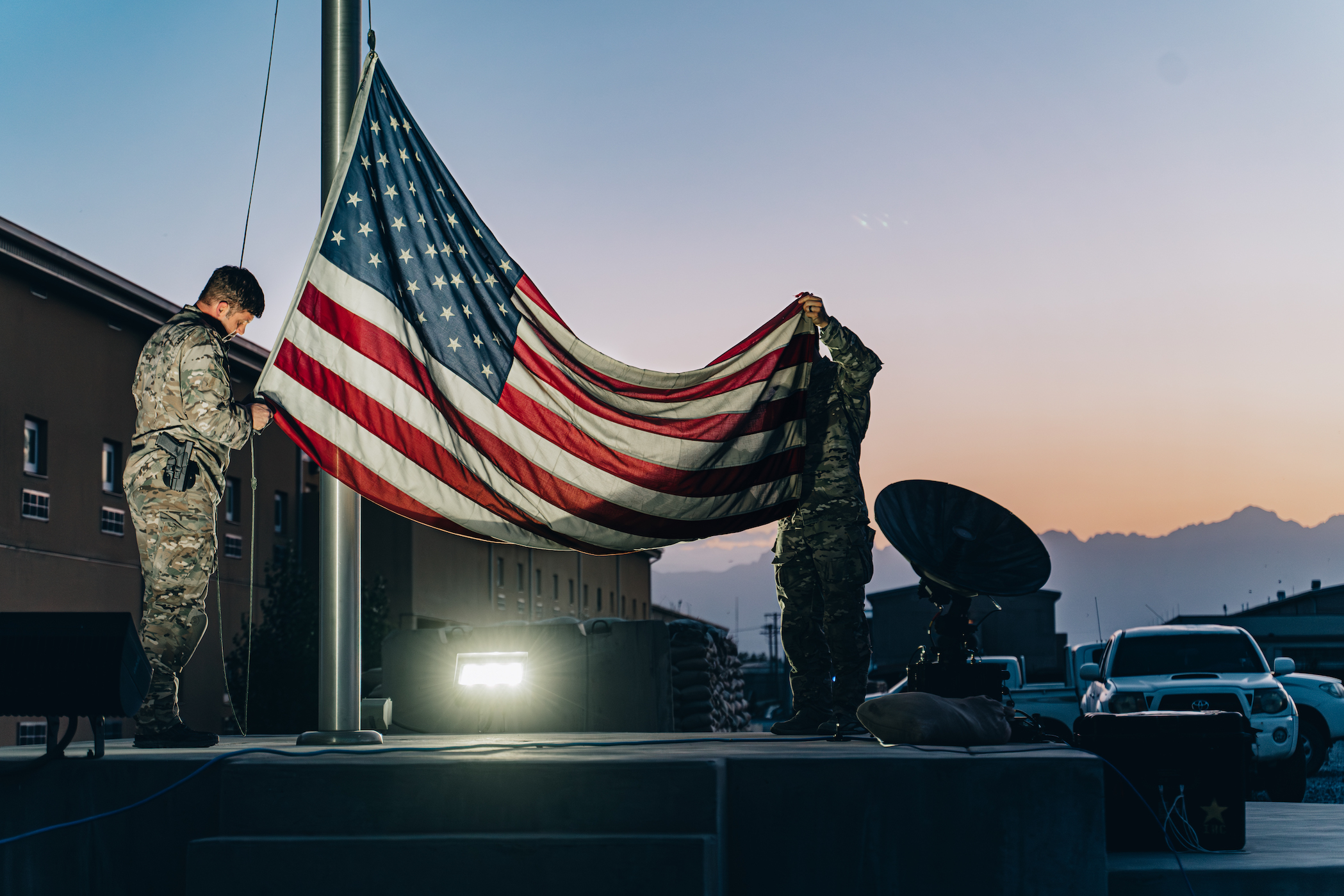 U.S. Army Rangers assigned to the 75th Ranger Regiment, take down the last U.S. flag at Bagram Airfield, Afghanistan in July 2021. Bagram Air Base was the largest U.S. base in Afghanistan during Operation Enduring Freedom. Bagram Airfield was first secured by the British Special Boat Service in November 2001 | Photo: U.S. Army/Sgt. Landon Carter, 75th Ranger Regiment